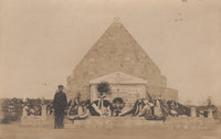 Галлиполийский памятник в день открытия 16 июля 1921 г. На фронтоне памятника надпись: «Упокой, Господи, души усопших. 1-й корпус Русской армии своим братьям-воинам в борьбе за честь Родины нашедшим вечный покой на чужбине в 1920—21 гг. и в 1854—55 гг. и памяти своих предков-запорожцев, умерших в турецком плену». 16 июля 1921 г. Фотография.