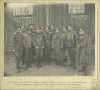 Knight of St. George,KozmaFirsovichKryuchkov, in the group of officers of the 3rd Don Cossack Regiment, headed by the regiment commander, military foreman V.F. von Axe. 1916. Photo.