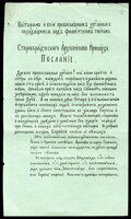 Обращение старообрядческого архиепископа Московского и всея Руси Иринарха (Парфенова) к пастырям и православным христианам, находящимся на оккупированной советской территории, с призывом помогать партизанским отрядам, вести борьбу в тылу противника, лишать фашистских солдат питания и боевой техники.