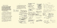 Декларация Объединенных Наций (Декларация 26-ти государств) о направлении всех своих ресурсов на борьбу с членами Тройственного пакта и их союзниками и о взаимном сотрудничестве в этой борьбе.(Декларация была подписана во время проведения Первой Вашингтонской конференции 1 января 1942 г. Декларацию подписали: от США – президент Ф. Рузвельт, от Великобритании – премьер-министр У. Черчилль, от СССР – советский посол в США М.М. Литвинов, от Китая – министр иностранных дел Сун Цзывень. Представители других 22-х государств подписали Декларацию 2 января 1942 г. В течение 1942-1945 гг. к Декларации присоединилось еще 21 государство)1 января 1942 г. Подлинник и заверенная копия. Машинописный текст. Подписи – автографы.